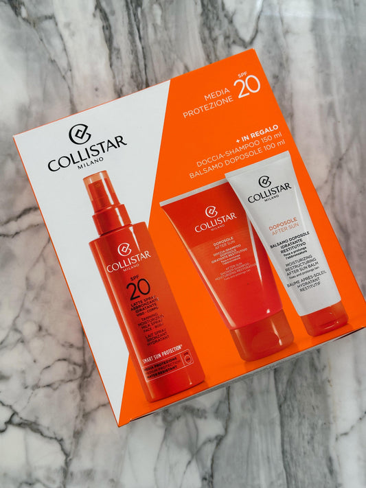COLLISTAR Set Tanning Moisturizing Milk Spray Face-Body SPF20 (Your Gift Shower Shampoo 150ml + After Sun Balm 100ml)