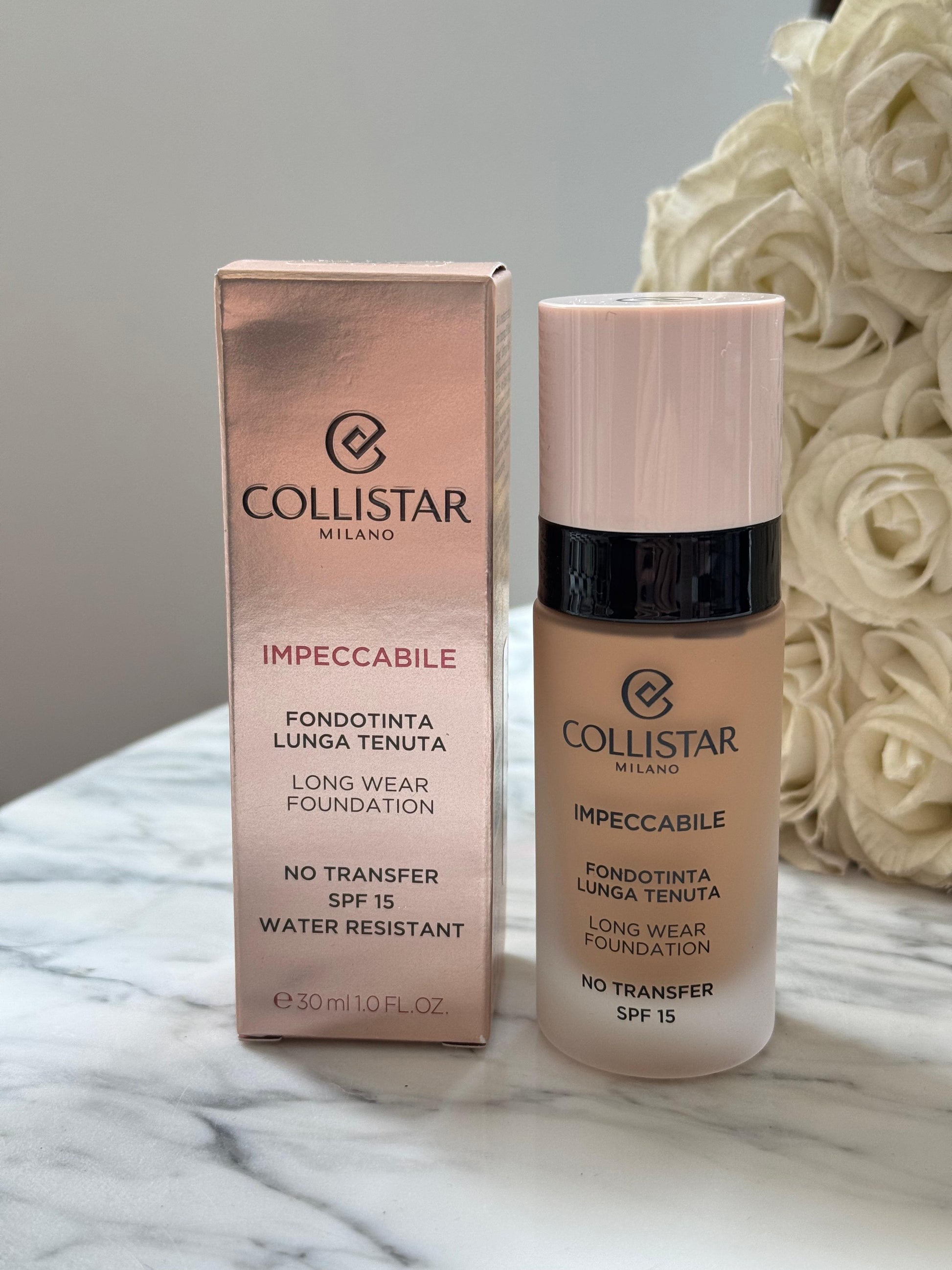 Nga Collistar Clean Research® vjen Impeccabile Long-Lasting No Transfer Foundation SPF 15, shprehja përfundimtare e kombinimit të përsosur të make-up-it dhe kujdesit të lëkurës, dhe një rutinë e re thelbësore bukurie për këdo që dëshiron të arrijë mbulim afatgjatë të "lëkurës së dytë" dhe, në të njëjtën kohë, hidratim të thellë dhe të zgjatur, deri në 120 orë.