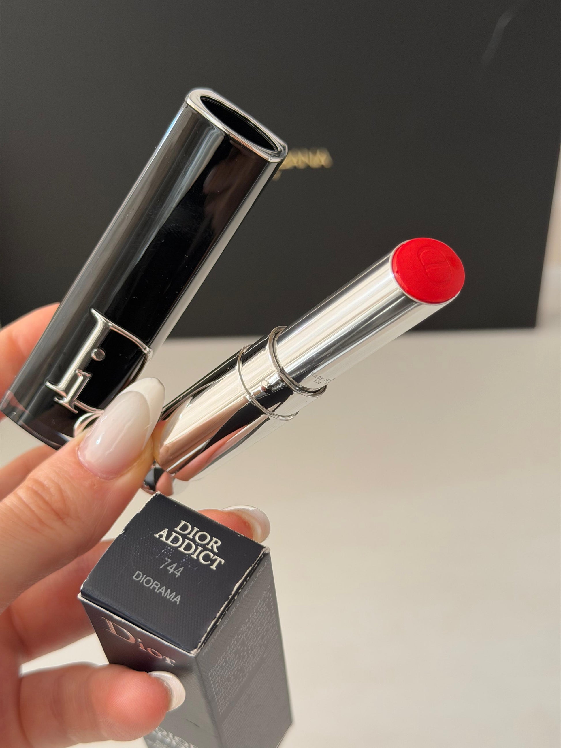 Në kutinë e tij të zezë me llak me vinyl, të stampuar me logon Dior Oblique – një jehonë e krijimeve të modës të Shtëpisë – dhe e mbushur me një perlë argjendi, buzëkuqi me shkëlqim Dior Addict kombinon thjeshtësinë me elegancën.