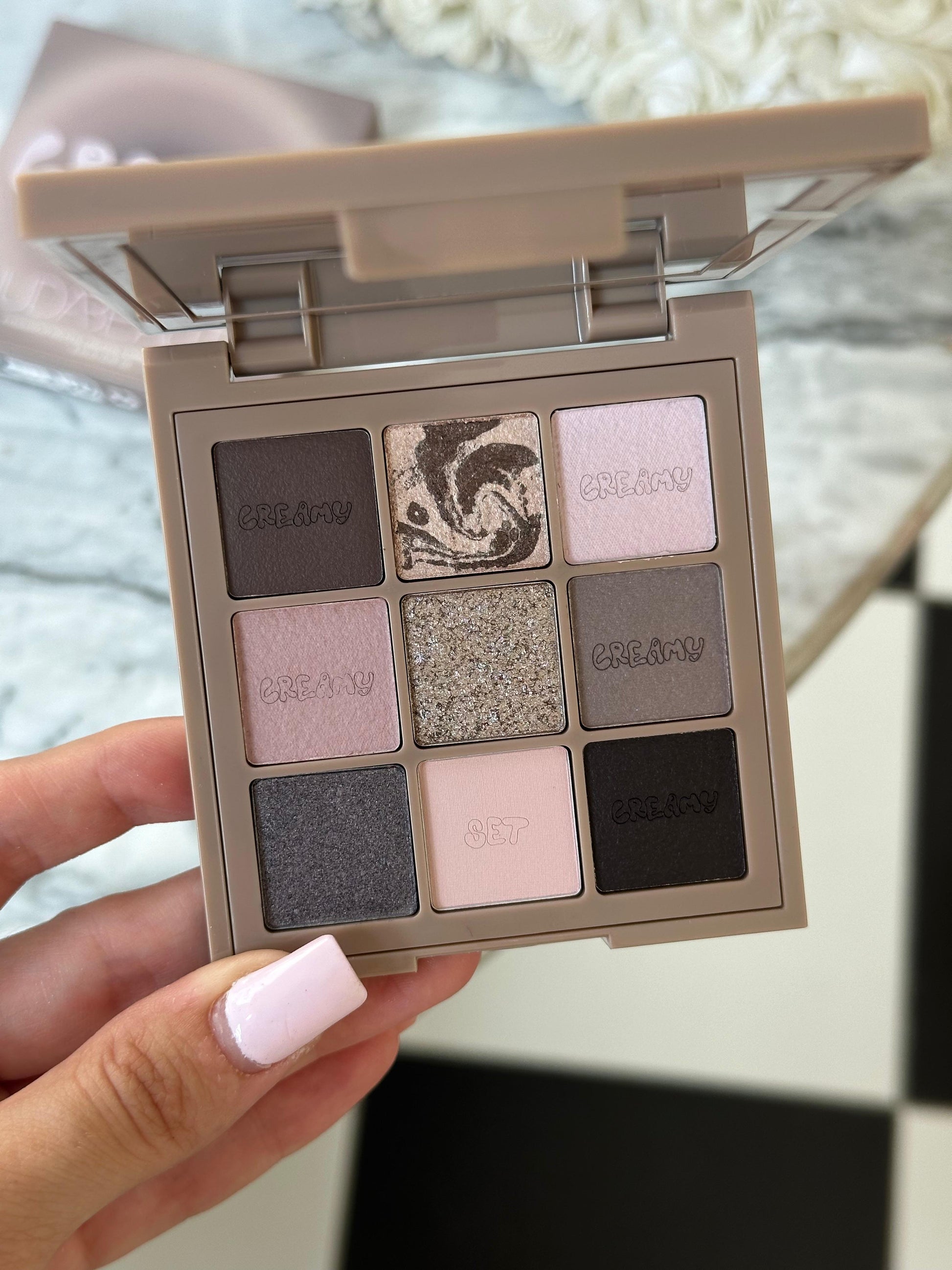 Këto paleta kremoze përfshijnë katër lloje të ndryshme të hijeve dhe formulave novatore! Nga kremi i shkëlqyeshëm në mat me teksturë ndijore që shndërrohen nga krem në pluhur të butë me një fund mat - përdorni këto pudra vetëm si bazë ose për të rritur intensitetin e pamjes. Nuancat krem-metalike kanë një formulë unike që, kur përdoret si një ngjyrë e pavarur, ka një ndikim të madh dhe, si një top, jep një fund të shkëlqyeshëm. Pluhurat tona krem në mermer kanë rrotullime abstrakte që krijojnë ngjyrë dhe teksturë transformuese për një ndjesi prej kadifeje dhe një përfundim shumëdimensional! Së fundmi është pudra ‘set’, një pudër super e hollë, prej kadifeje, e tejdukshme për të vendosur pamjen tuaj në vend – gjatë gjithë ditës!