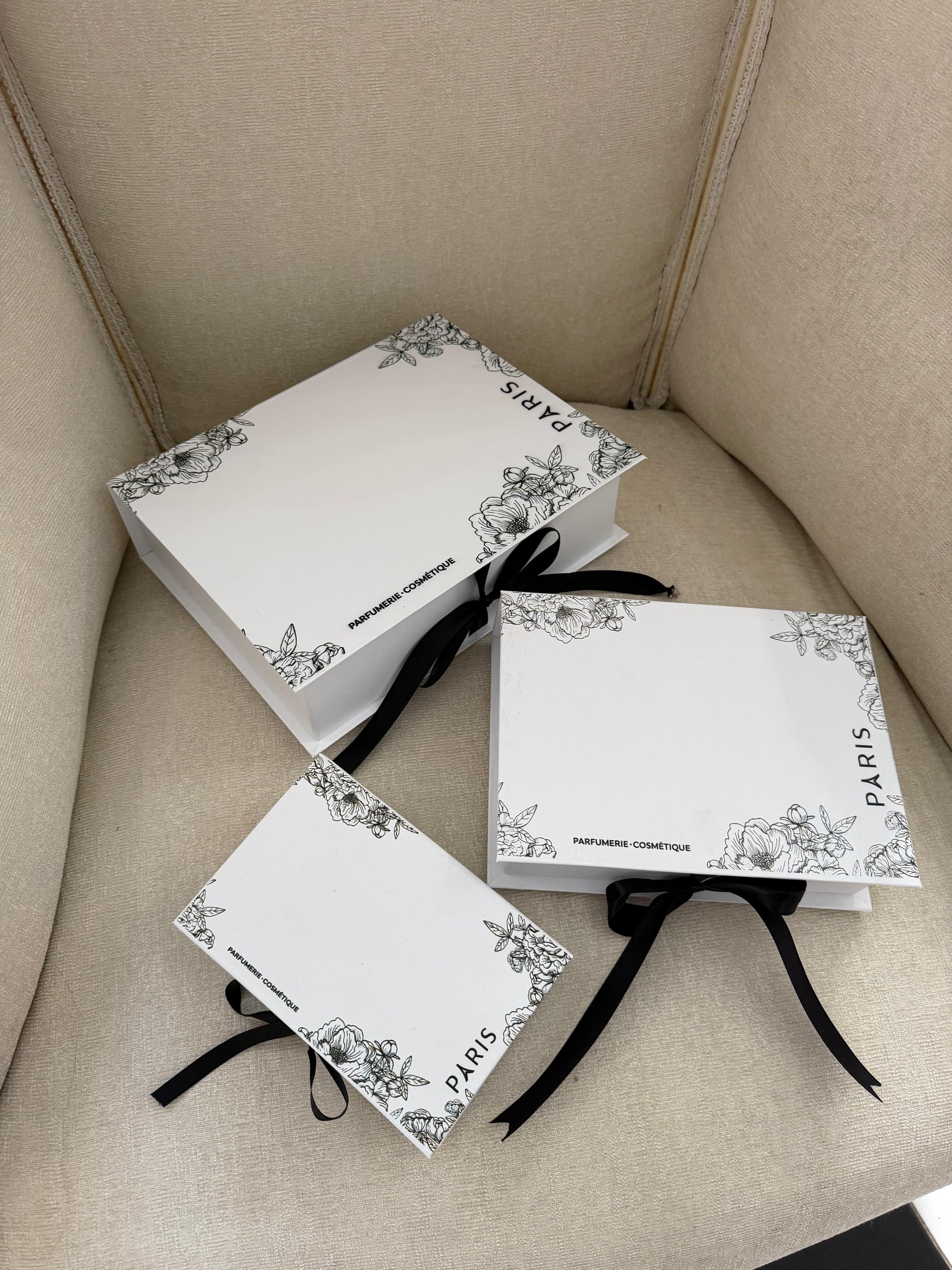 Solid paper gift boxes available in 3 different sizes: